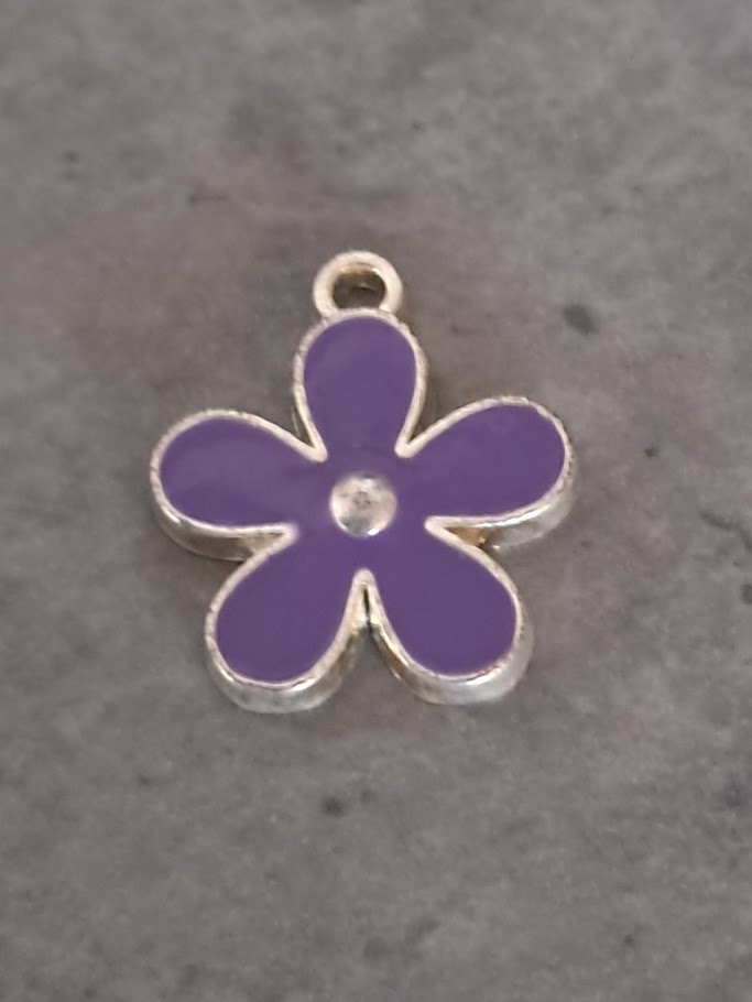bedel zilver bloem emanel paars 15 mm x 17 mm