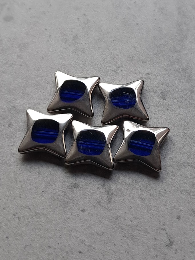 glaskraal ster blauw met zilverrand 18 mm 5 stuks