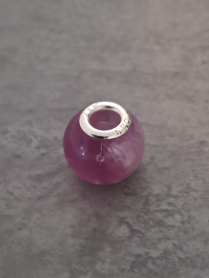 kraal zilver kern 925 kunsthars paars 12 mm rijggat 5 mm