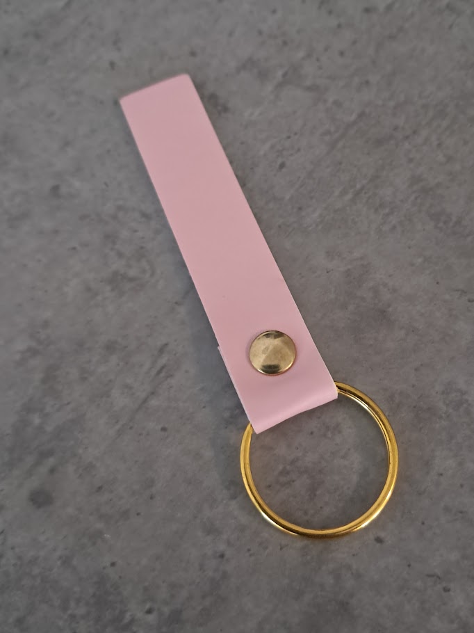 sleutelhangerring goudkleur met rose kunstleer 9.5 cm inclusief ring