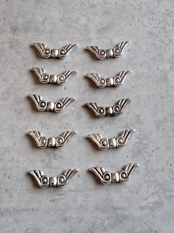 engelenvleugel tibetaans zilver 21 mm x 7.5 mm 10 stuks