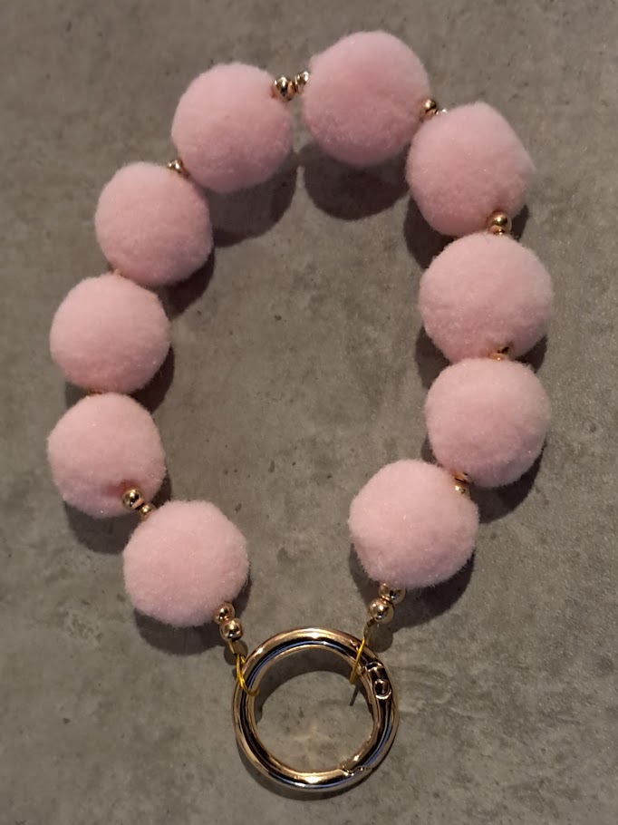 sleutelhanger pompom light pink-gold 12 mm x 10 mm doorsnede 17.9 mm