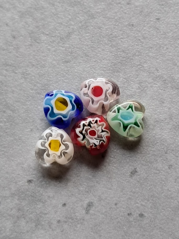 millefiori kraal 5 mm x 5 mm hart bloem multicolor 5 stuks