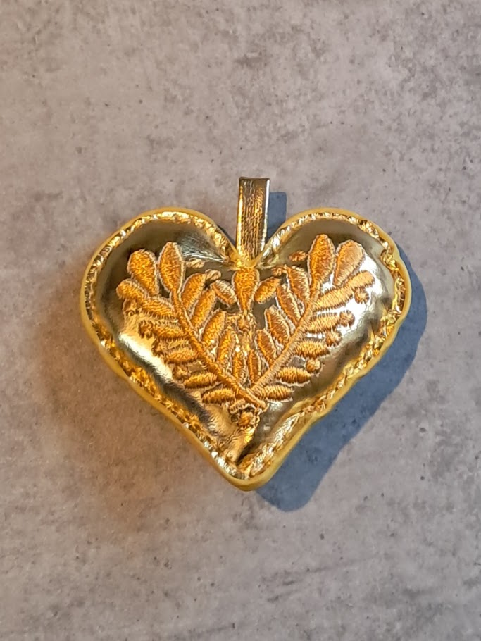 trendy hanger hart met bladmotief goud 6 cm x 6.5 cm