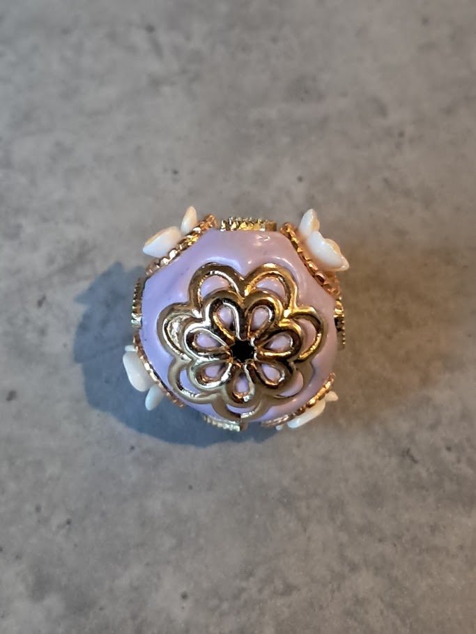 Deze unieke kralen zijn met de hand gemaakt van klei en ingelegd met kleine kraaltjes, glittertjes, stras en metalen kralenkapjes. Elke kraal is een kunstwerk op zich, met zijn eigen charme en individualiteit. Laat u inspireren door de ambachtelijke schoonheid en de unieke details van deze prachtige kralen.