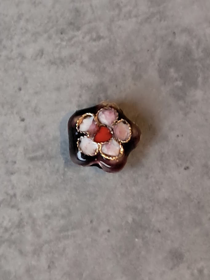 Cloisonné kralen werden in de middeleeuwen in China geintroduceerd. De kralen bestaan uit een metalen kern, met daar omheeen glas. De kralen zijn versierd met bloemen en blaadjes met daaromheen mooie, goudkleurige randjes. Ondanks de metalen kern zijn de kralen heel licht. Ze zijn namelijk hol van binnen.