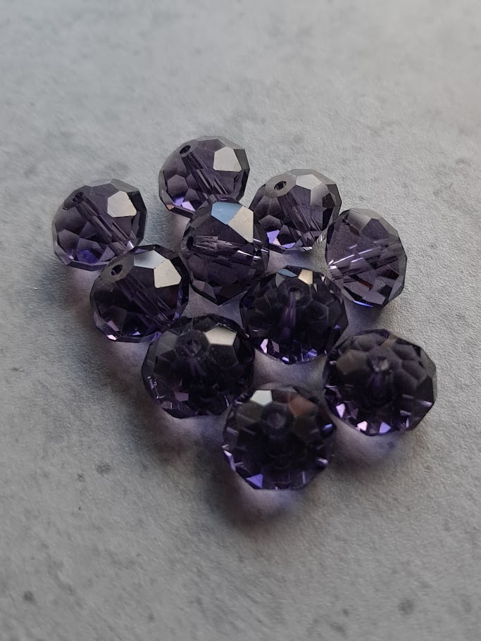glaskraal facet geslepen rondel paars 12 mm 10 stuks