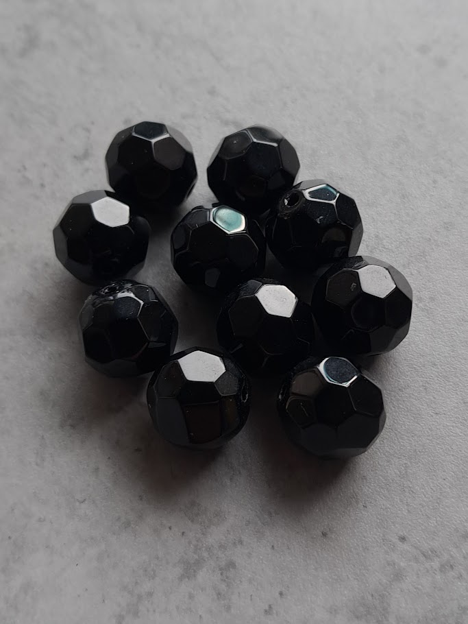 glaskraal facet geslepen zwart 14 mm 10 stuks