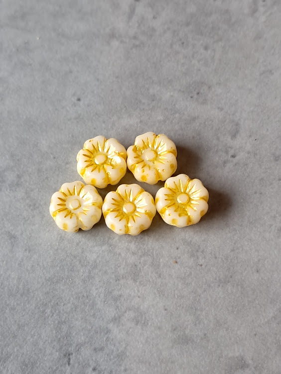 Czech glaskraal bloem lemon yellow-white 7 mm 5 stuks