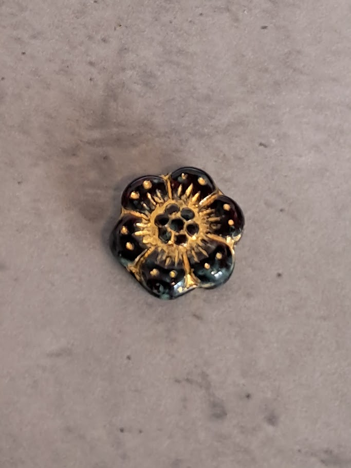 Czech glaskraal boho flower transparent red gold 14 mm